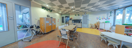 Onze groepsruimte is een veilige, huiselijke plek waar je kind in alle rust op ontdekking kan gaan. Voor de allerkleinsten hebben we een speciale babyhoek ingericht. In het midden van de ruimte staat een grote leeftafel waar we samen eten en spelen. Onze buitenspeelplaats is afgebakend en biedt volop speelmogelijkheden. Daarnaast maken we gebruik van de diverse andere ruimtes in het gebouw.