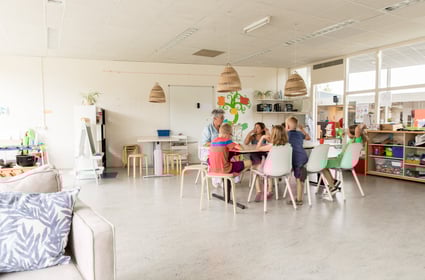 Onze ruimte is licht en ruim opgezet met een gezellige zithoek, een eigen keukentje, verschillende knutsel- en bouwhoeken en een grote stamtafel waar kinderen samen kunnen eten, spelen of activiteiten kunnen doen. Buiten beschikken we over een groot schoolplein met zandbak, schommels, een klimrek met glijbaan en een pannakooi. Achter de school ligt een tweede plein met extra klimrekken, een pannakooi en een groot grasveld. Hier mogen kinderen met zelfstandigheidscontracten of onder begeleiding zelfstandig spelen.