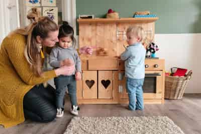 Onze locatie beschikt over een eigen, aangrenzende buitenspeelruimte waar de kinderen dagelijks naar toe gaan. De tuin wordt regelmatig opgeknapt en biedt voldoende ruimte om te rennen, klauteren en spelen met zand en water. Alles wat nodig is voor een veilige en comfortabele dag is aanwezig: luiers, billendoekjes, flesvoeding, warme maaltijden, fruit en drinken. Ouders ontvangen via onze ouderapp foto’s en berichten, zodat u niets van de ontwikkeling van uw kind hoeft te missen.